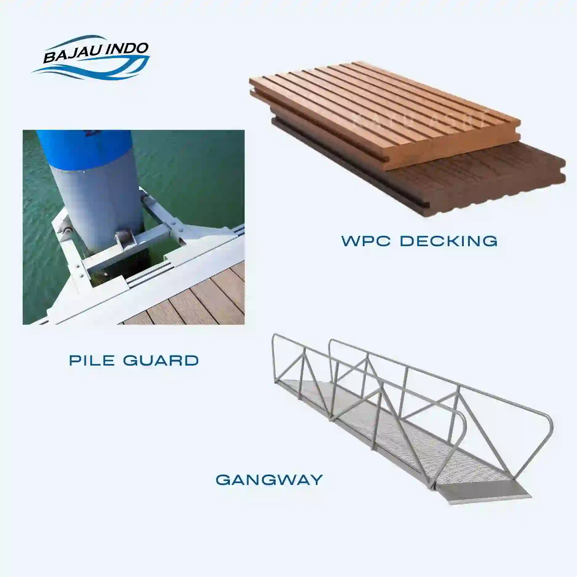- Accessories : cleat, rubber fender, corner fender dan pile cap