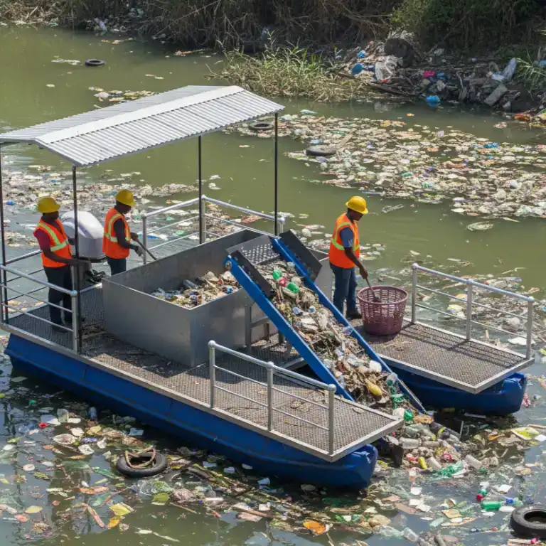 Floating Trash Collector/ Perahu Penyedot sampah dengan conveyor listrik (4,5×3 M)